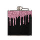 Blush Pink Glitter Drips Sparkle Monogram Black Hip Flask