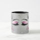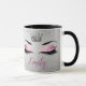 This stunning Blush Pink Glitter Eyes Monogram Mug features a Silver Queen's Crown and a pair of eye lids with Blush Pink glitter eyeshadow, diamanté effect liner with long black lashes on a silver glitter effect background. Personalize with the name of your choice in matching Blush Pink. Designed by Jacqueline.