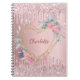 Blush pink glitter floral monogram name diary notebook