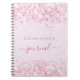 Blush pink background with faux glitter dust. The title: journal written with a girly modern hand lettered style script with swashes. Pink coloured letters. A notebook for journalling, notes and school homework.