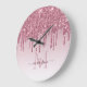 Blush Pink Glitter Sparkle Glam Dripping Monogram Large Clock