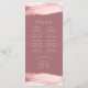 This elegant, modern wedding program features blush pink watercolor agate top and bottom borders trimmed with gold faux glitter. The text appears in elegant blush handwriting and copperplate fonts on a dusty rose background.