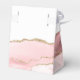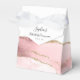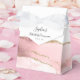 This elegant modern favour box features a blush pink watercolor agate design trimmed with gold faux glitter. The words "First Holy Communion" appear in charcoal grey handwriting script on a white background. Personalise it with your child's name, along with the date below. Ideal for a girl's First Communion.