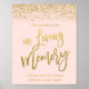 Blush Pink Gold Faux Glitter Wedding Memorial Sign
