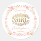 Blush Pink & Gold Floral Girl Baby Shower Classic Round Sticker