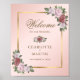 Elegant blush pink and gold floral wedding welcome sign featuring a gold frame adorned with blush pink roses and greenery. Matching items available. Easily personalise online.