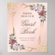 This elegant blush and gold floral sign featuring a gold geometric frame adorned with blush pink flowers and greenery invites wedding guests to sign your guestbook. Matching items available. Easily personalise this template online.