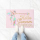 Blush Pink Gold Glitter Boho Feather Hello Summer Doormat