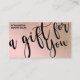 This is the perfect gift certificate business card for a trendy, stylish, girly, and modern businesswoman. This design features simple black handwritten brush script typography on a faux printed diagonal gold glitter and blush pink ombre gradient glamourous and chic background. It's the perfect way to allow your customers to buy a gift for their family and friends and at the same time promote your business.