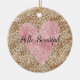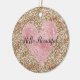 Blush Pink Gold Glitter Heart Leopard Print Ceramic Ornament
