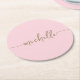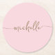 Blush Pink Gold Monogram Name Script Signature Round Paper Coaster