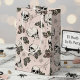 Hand-drawn in black ink, this gift bag features a beautiful pattern of skulls, roses and spiderwebs in cream and blush tones, all against an elegant blush pink background.