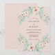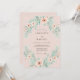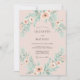 This design features a soft blush pink background adorned with delicate peach roses and lush greenery. The botanical elements include sage green eucalyptus leaves and fern-like foliage, creating a romantic and airy atmosphere. Perfect for a seasonal spring theme, the artwork evokes a sense of natural elegance and tranquillity.