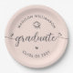 Blush Pink Graduation Gray Script Hearts Cap Bold Paper Plate