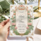 This design was crafted with deep love for whimsical and romantic vibes in efforts to make it feel as special as your big day. Inspired by vintage elegance, I have created a delicate floral frame of soft pink roses and lush greenery, accented with golden details. It is something that you would feel proud to share with your family and friends as it reflects timeless beauty and romance, further giving a glimpse of a one-of-a-kind love and romance. If you adore this design but would love it in a different colour palette to match your theme, feel free to send me a message! I’d be delighted to work with you to create a version that’s perfect for your special day.