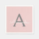 Blush Pink Grey Script Monogram Name Modern Napkin