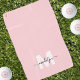 Create Your Own Personalised Custom Blush Pink Modern Script Name Monogram Golf Towel. This chic, feminine golf towel features a stylish monogram design with a flat white initial on a soft blush pink background and a classic black script name for a personalised touch. Printed on one side, this towel adds a unique and elegant flair to any golf bag. It makes a fun and sophisticated gift, perfect for birthdays, holidays, Mother’s Day, or any special occasion when you want to celebrate someone—or treat yourself! Ideal for the golf lover who enjoys a blend of style and personalisation while staying practical on the course.