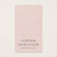 Modern, vertical business cards with your name and title on the front on a light blush pink printed linen look background. Customisable template fields for your contact information and logo on the back. You can move and resize elements with the design tool.
