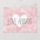 Blush Pink Watercolor with personalised quote Love Always or your own words white heart postcard