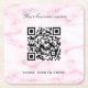 Blush pink marble business name qr code square paper coaster