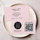 Enhance your professional presence with this Modern and Simple QR Code Logo Business Card featuring a blush pink hue and minimalist black design. Tailor it with your logo, QR code, company or business name, website, social media handles, and job title for a sleek appearance. It's a convenient way to promote your business. Customise and order your business cards online effortlessly.