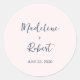 This elegant, minimalist wedding envelope seal features blush pink and blue, modern script typography and clean simple handwritten calligraphy text for a stylish blush pink background you will love.