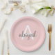 Blush Pink Modern Grey Cute Monogram Paper Plate