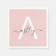 Blush Pink Modern Script Girly Monogram Name Napkin