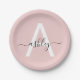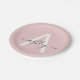Blush Pink Modern Script Girly Monogram Name Paper Plate