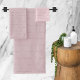 A beautiful set of blush pink bathroom towels with monogram pattern that can be customised to your name. The signature script font is classy and stylish.