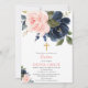 Blush pink navy blue floral girl baptism invitation