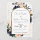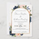Blush Pink Navy Floral Arch QR Code RSVP Wedding Invitation