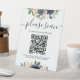 Blush Pink Navy Floral Wedding Program QR Code Ped Pedestal Sign