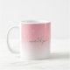 This mug features a blush pink ombre background with faux silver glitter. Personalise it with your name.
