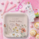 Blush Pink Peach Floral Wildflower Square Paper Plate