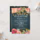Luxury elegant vintage romantic style sweet sixteen party invitation template featuring blush pink and peach gold peony roses and blooms borders and golden rustic strings or twinkle lights on a midnight blue chalkboard background. ----- The invite is suitable for spring or summer night, rustic or garden outdoor parties.