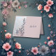 This wedding table numbers features a graceful branch with muted blue and beige leaves, set against a soft pastel pink and pearl-toned background. The textured composition blends natural elegance with a dreamy, minimalist aesthetic. Perfect for modern, nature-inspired themes or designs that evoke serenity and subtle sophistication.