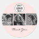Blush Pink Photo Black Script Hair Stylist Classic Round Sticker