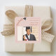 Add a personalised finishing touch to your graduation party favours with these elegant custom stickers. Blush pink coloured background, featuring the playful “Graduate” script, a cap illustration, and a personalised photo, these stickers make the perfect addition to treat bags, gift boxes, envelopes, drink cups, party décor, and more.