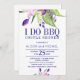 Elegant spring, summer or autumn fall I DO BBQ couple shower invitation template on white (editable) background featuring watercolor bouquets of blush pink, plum and lilac purple flowers and blooms with sage green leaves. Personalise with your details! You can choose to customise it further changing fonts and colours of lettering. ---- The invitation is suitable for outdoor garden / backyard / floral chic / country bbq parties. --- If you need assistance, please contact me!