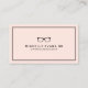 Stylish professional ophthalmologist and optometrist business cards with an elegant blush pink and black design with an eyeglasses logo. A minimalist and pretty design.