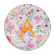 A soft romantic image with watercolored flowers, florals in blush pink, puple, green and blue. A chic white background. Personalise and add your monogram letter written with a large golden block letter.