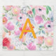 A soft romantic image with watercolored flowers, florals in blush pink, puple, green and blue. A chic white background. Personalize and add your monogram letter written with a large golden block letter.