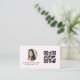 Blush Pink QR Code Photo Monogram Minimalist Business Card