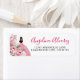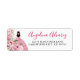 This charming return address label features a watercolor design with pink roses, peonies, and soft greenery, along with a girl in a sparkling pink dress and tiara on the left side. Your name appears in vibrant magenta pink handwritten script, while the address is printed in a classic black serif font on the right. The mix of elegant florals and a whimsical princess theme gives it a refined yet playful look, perfect for Quinceañera invitations, birthday parties, bridal showers, or thank you notes.