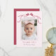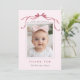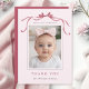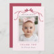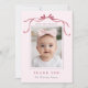 Blush Pink Red Bow Minimal Birthday Photo Thank You Card