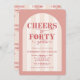 Blush Pink Red Cheers to 40 Years 40th Birthday Invitation