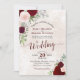This beautiful wedding invitation features an elegant boho chic watercolor floral design with hand painted roses in shades of blush pink, deep red and burgundy. The rustic bouquet includes sprigs of lavender, eucalyptus, baby's breath and other leaves foliage and greenery all on a marbled rose colored background. Wonderful way to invite your friends and family to be a part of your special day