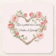Blush Pink Romantic Red Rose Floral Heart Wedding Square Paper Coaster