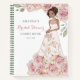Bridal shower guest book features an illustrated bride in a pink rose adorned gown. Multiple options for skin tone, and hairstyles. Coordinates with pink roses bride invitation.